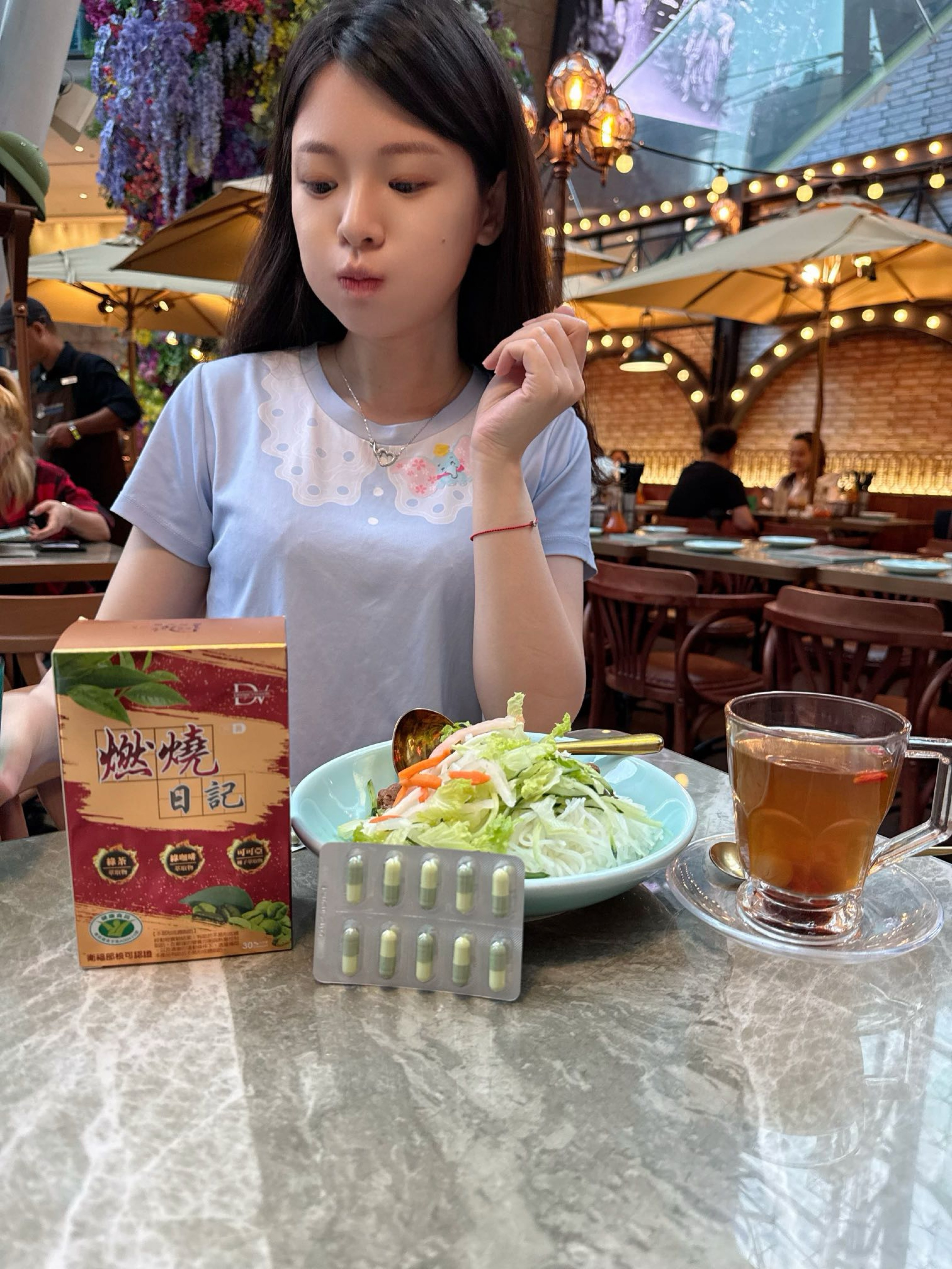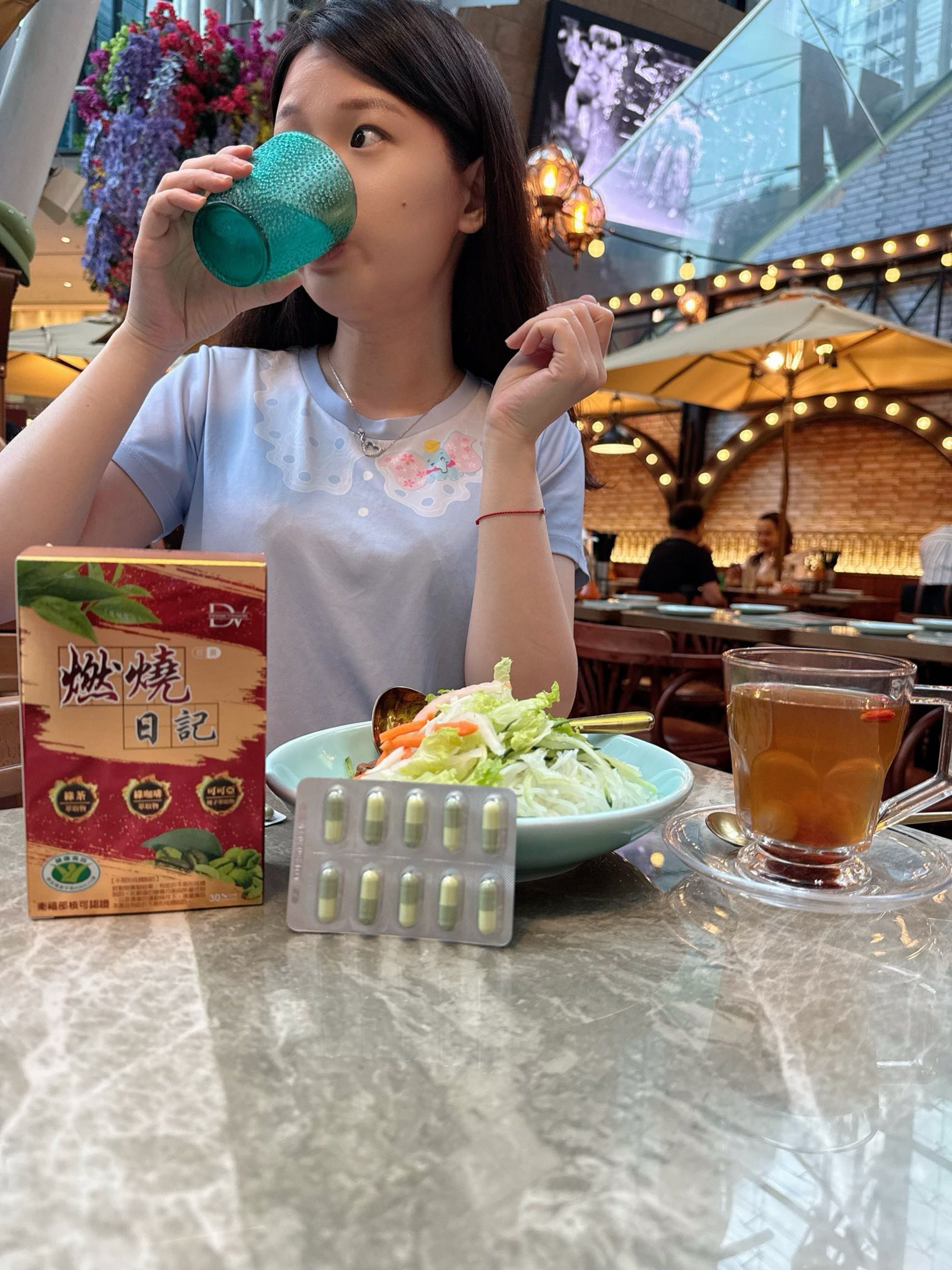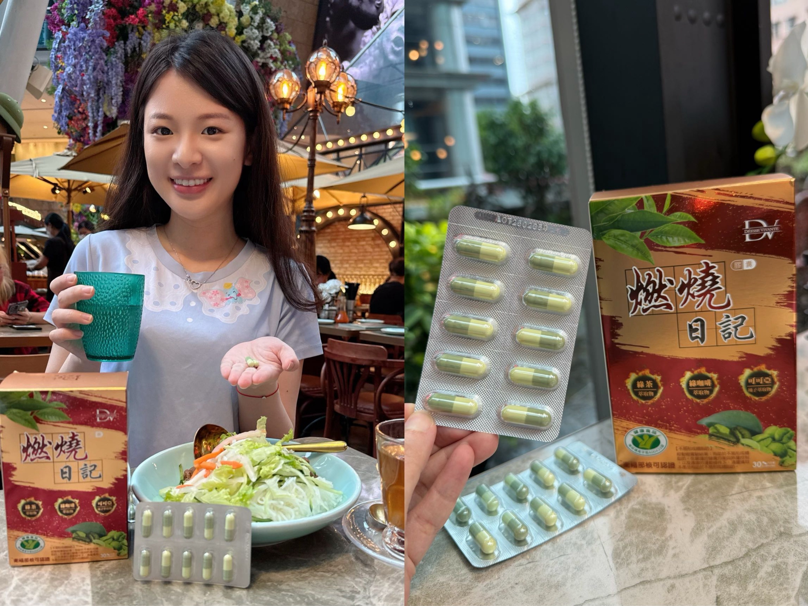 像我前陣子去香港旅遊真的覺得每天這樣吃罪惡感很重,好險入手了DV燃燒日記,讓我餐前吃兩顆不害怕